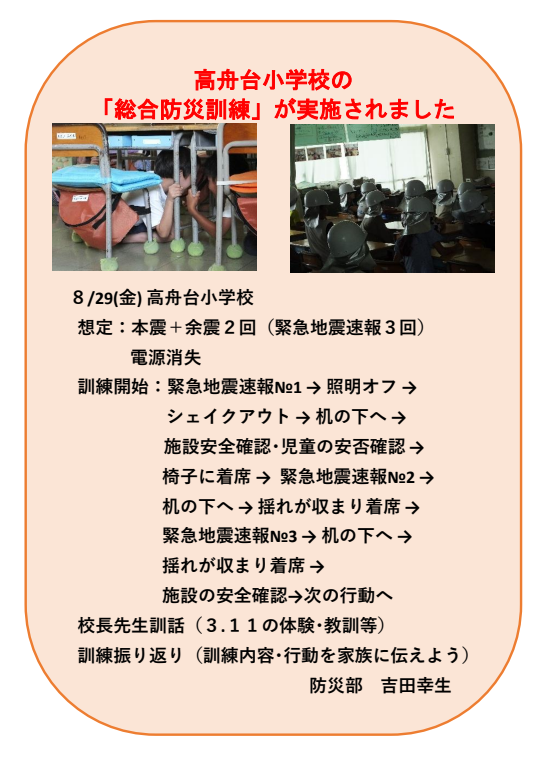 8月30日に高舟台小学校で防災訓練が実施されました。